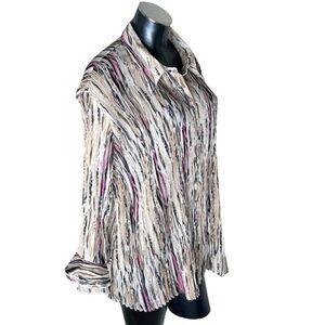 ESSENTIALS By Milano Multi-colored Crinkled Button-up Blouse Women's Size 2X