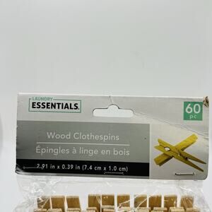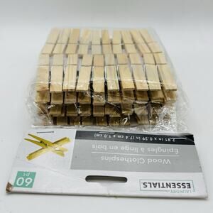 ESSENTIALS Wood Clothespins – 60 Count (Brand New in Package) 2.91 X 0.39. New!