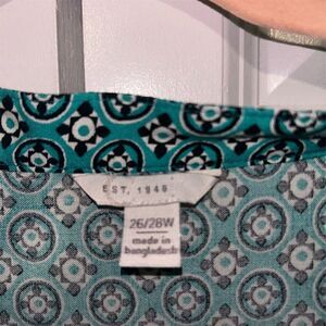 EST. 1946 Boho Tunic Blouse Turquoise White Geometric Print V-Neck size 26/28