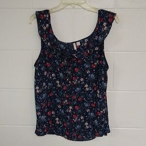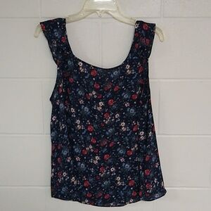 EST. 1946 COTTAGECORE, FLORAL, RUFFLE , TIE NECKLINE, TANK TOP BLOUSE