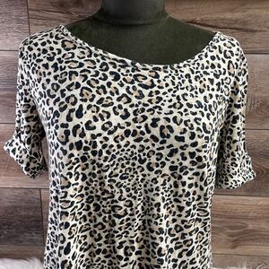 EST 1946 Ladies Leopard Print Scoop Neck Top Size Medium Off white Black Tan