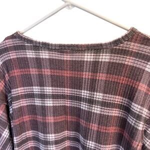 EST. 1946 Size L V-Neck Plaid Long Sleeve Top Mauve White Stretch Knit Comfy