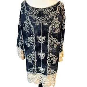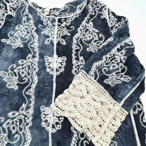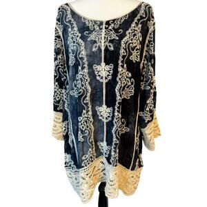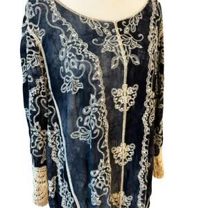 EST 1946 Women's 18/20 Blue Crochet Open Knit Pullover Tunic Embroidered Floral