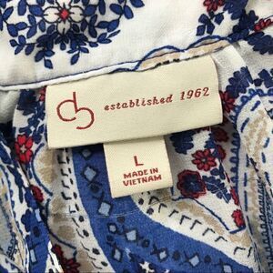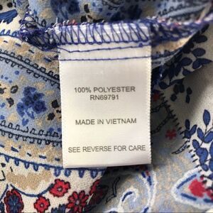 EST. 1962 Lovely paisley patterned navy/white/tan/red sleeveless lightweight button up blouse