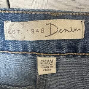 EST.1946 Denim skirt embroidered on sides, packets, zip fly, ram hem plus size