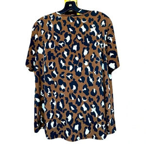 EST.1946 Womens Leopard Print V Neck Short Sleeve Tunic Blouse T Shirt Large
