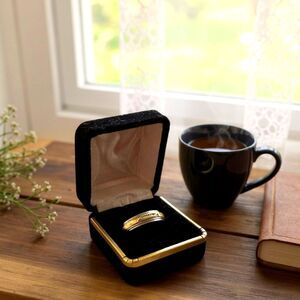 This product is a stunning 14K yellow gold and sterling silver wedding band ring featuring five round white diamonds. The band style ring is perfect for both men and women, making it a versatile option for couples looking for a timeless piece of jewelry. With a very good cut grade and natural diamond creation, this ring is sure to be a beautiful symbol of love and commitment. SIZE 11