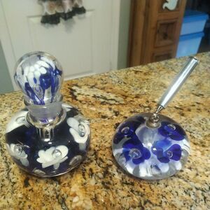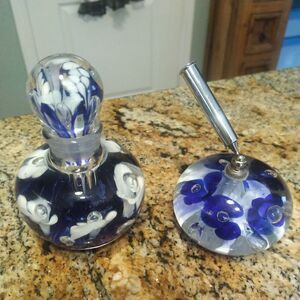 ESTATE LOT ARTIST SIGNED ART GLASS PERFUME BOTTLE PEN HOLDER SET BOB ST CLAIR