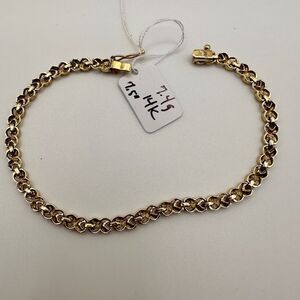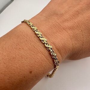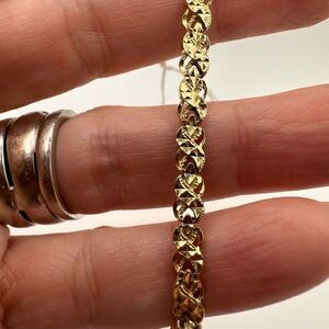 It's a diamond cut "X" or infinity pattern, solid 14k yellow gold bracelet!