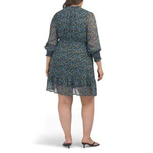 ESTELLE Blue/green Plus Iris Shirred Midi Dress