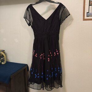 EShakti Dress Sz 8, cotton poplin with tulle embroidered overlay NWOT