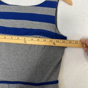 Royal blue and gray striped jersey dress with a pleated skirt. Classic style for a party, event, or work. Thick, high quality, really nice brand. No stains or other flaws.