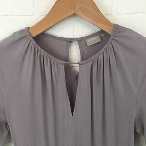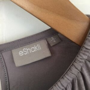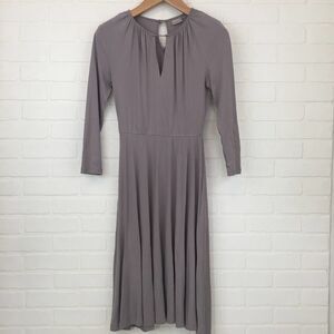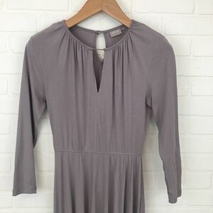 Size S/4. EShakti Keyhole Neck Cotton Knit Dress. A keyhole front at the ruched neck enhances the feminine fit of the cotton jersey knit dress. Elastic waist and flared skirt. Sleeves are 3/4 length.