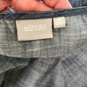 EShakti Summer Lightweight Chambray Fit And Flare Midi Dress With Floral Hem 2X