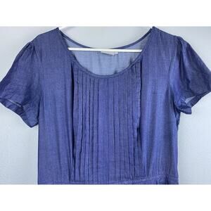 EShakti Sz M (10) Chambray Pintuck Puff SS Fit’N’Flare Black Trim Full Skirt Dress. Pockets. Zipper on side. Measurements in photos
