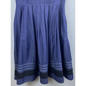 EShakti Sz M (10) Chambray Pintuck Puff SS Fit’N’Flare Black Trim Full Skirt Drs