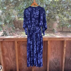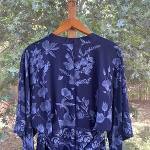 EShakti Wayward Fancies Blue Floral Kimono Sleeve Maxi Dress Size 3X/26W