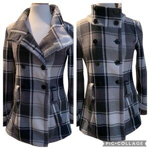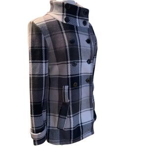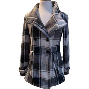 E Studio Gray & Black Large Plaid Double-Breasted Jacket size Small