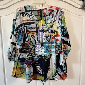 ET Lois Blouse Art To Wear Colorful 3/4 Sleeve Abstract, Size Medium