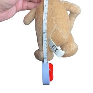 The product is an 8-inch plush figure of E.T. from the character family of E.T., made by Toy Factory. The plush is brown in color and washable. Perfect for fans of the classic movie, this new plush figure with tags is sure to delight collectors and children alike with its adorable design and high-quality construction.