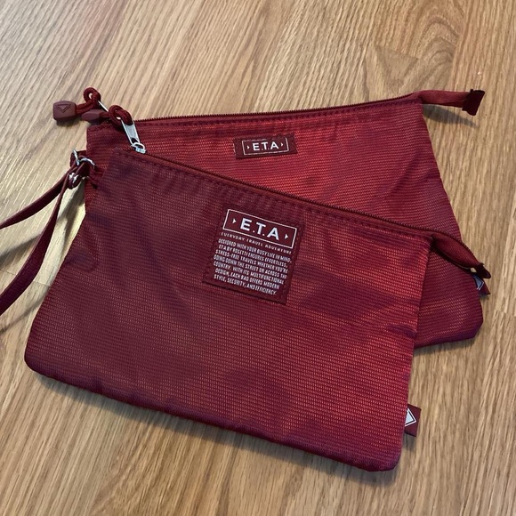 Stylish red pouch set by E.T.A. Perfect for organizing essentials.