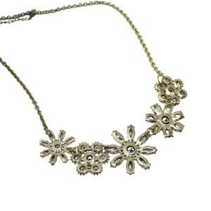 ETC Statement Necklace w Iridescent Pastel Flowers and Rhinestones