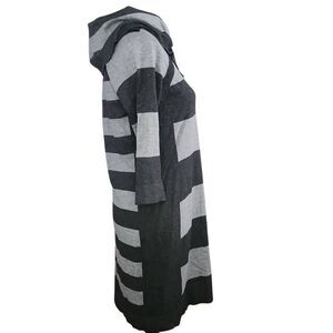 ETC Women's Size Medium Gray Striped Cowl Neck 3/4 Sleeve Dress