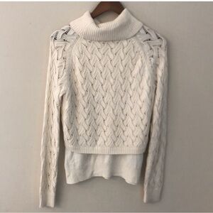 ETC fisherman style sweater cashmere blend cowl neck cropped layered size XL