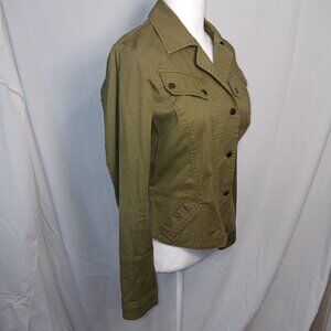 ETCETERA BRAND, ARMY GREEN SHORT JACKET, SNAP FRONT, FITTED, SIZE 0