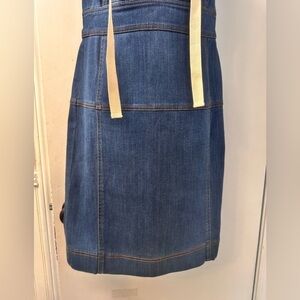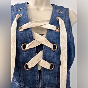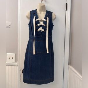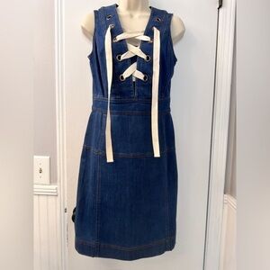 ETCETERA Blue Denim Stretch Dress Lace Up Neckline Size 2