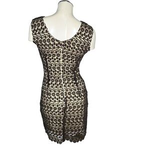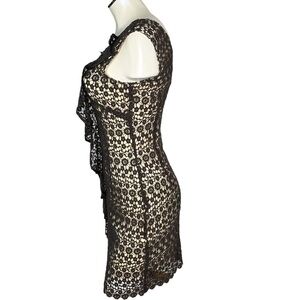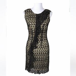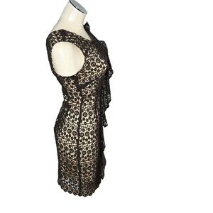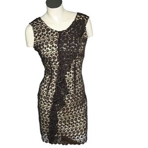 ETCETERA Brown Cream Floral Crochet Sleeveless Ruffle Sheath Dress Size 0