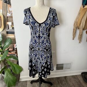 ETCETERA Dress Womens Fit n Flare Geometric Stretchy Sweater Size Small