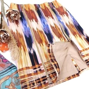 ETCETERA Multicolored Double Gold Front Zipper Skirt Absolutely Gorgeous Sz 4