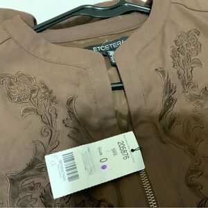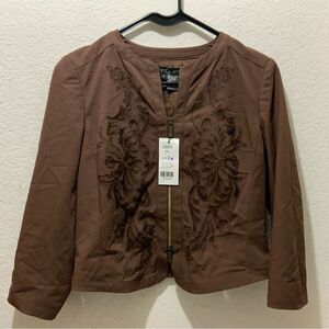 ETCETERA Womens Brown Zipper Front Jacket Size 0 Embroidery With Transparency .