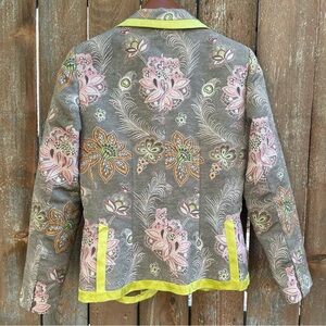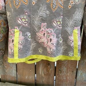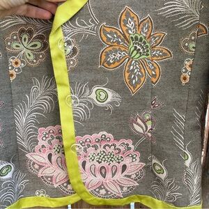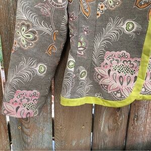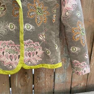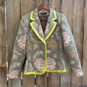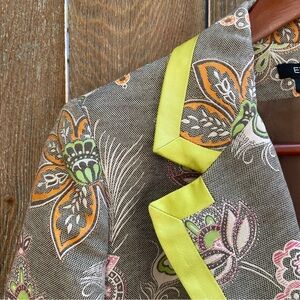 ETCETERA Women's Floral Brown Pink Open Front Jacket Blazer Yellow Trim Size 12