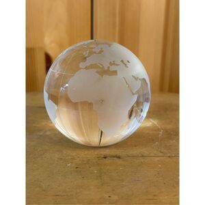 ETCHED CRYSTAL WORLD PAPERWEIGHT GLOBE PLANET EARTH CLEAR/FROSTED GLASS 3" (8188