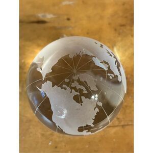 ETCHED CRYSTAL WORLD PAPERWEIGHT GLOBE PLANET EARTH CLEAR/FROSTED GLASS 3" has a few blemishes see pictures (8188)