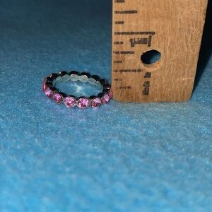 Pink crystal eternity ring silver tone setting sparkly September birthstone