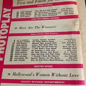 This September 1968 PHOTOPLAY magazine is a real Time Machine. The main story is about the aftermath of the assassination of Robert F Kennedy. Also - Elvis & Pricilla, Sidney Poitier, John Wayne and. Magazine is completely intact but it is a little brittle - the cover has pulled away from the magazine - but it is all there.