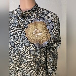 The ETHNC Classics Floral Blouse in size small is a versatile and stylish addition to any woman's wardrobe. This blouse features a beautiful multicolor floral design, long sleeves, and a regular fit, making it suitable for both casual outings and travel adventures. Made from a blend of viscose and cotton, this blouse is comfortable to wear in various seasons such as winter, summer, fall, and spring. With its basic style and ethnic brand influence, this blouse is a timeless piece that can be dressed up or down to suit different occasions.