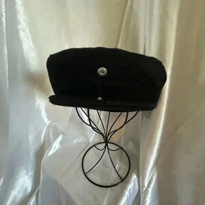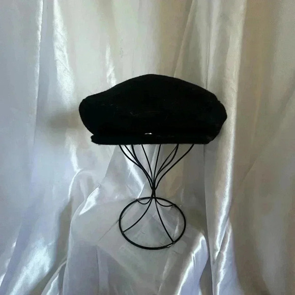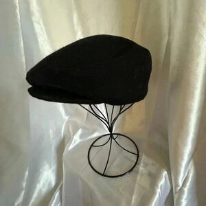 ETHOS VINTAGE (?) BLACK WOOL BERET CADDY HAT SIZE SMALL UNISEX GOOD CONDITION
