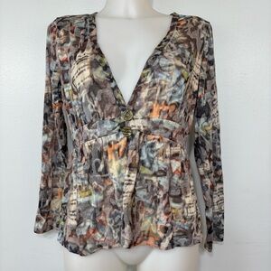 ETHYL Multi Color Funky Abstract Leopard Print 2 Button Blouse Size S