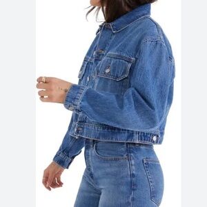 ETICA River Crop Jacket Natural & Organic in medium “Cielo ” wash size Large NWT