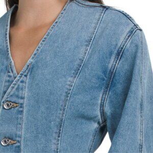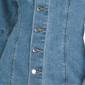 denim design, brand logo accent, elastic cuffs