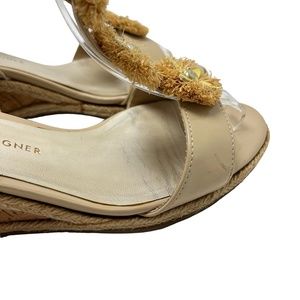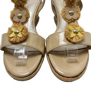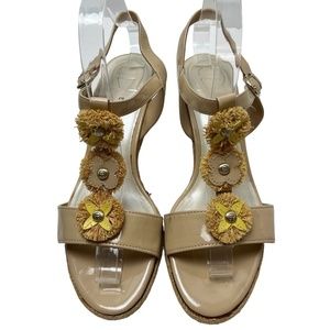 ETIENNE AIGNER Beige Tan Cork Wedges Slingback Sandals Patent Leather Sandals 7