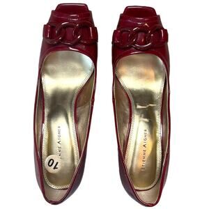 ETIENNE AIGNER Nigela Red Patent Peep Toe Pumps Women’s 10 3.5” Block Heel