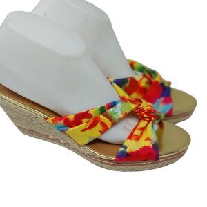 Colorful cloth uppers. Wedge sandals. Size 11. New condition.