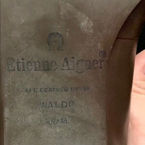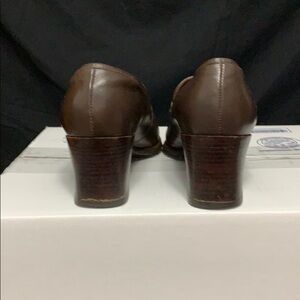 Size 8.5. “Waldo”. Brown leather upper with chunky heel. Good condition.