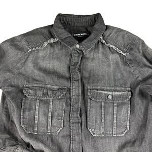 ETIENNE MARCELL Washed Black Gray Frayed Long Sleeve Denim Utility Jumpsuit S