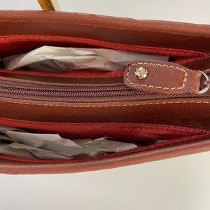 ETIENNE Ratten Hand Bag Faux Leather Trim Strap Center Zipper Pocket Two Pouches